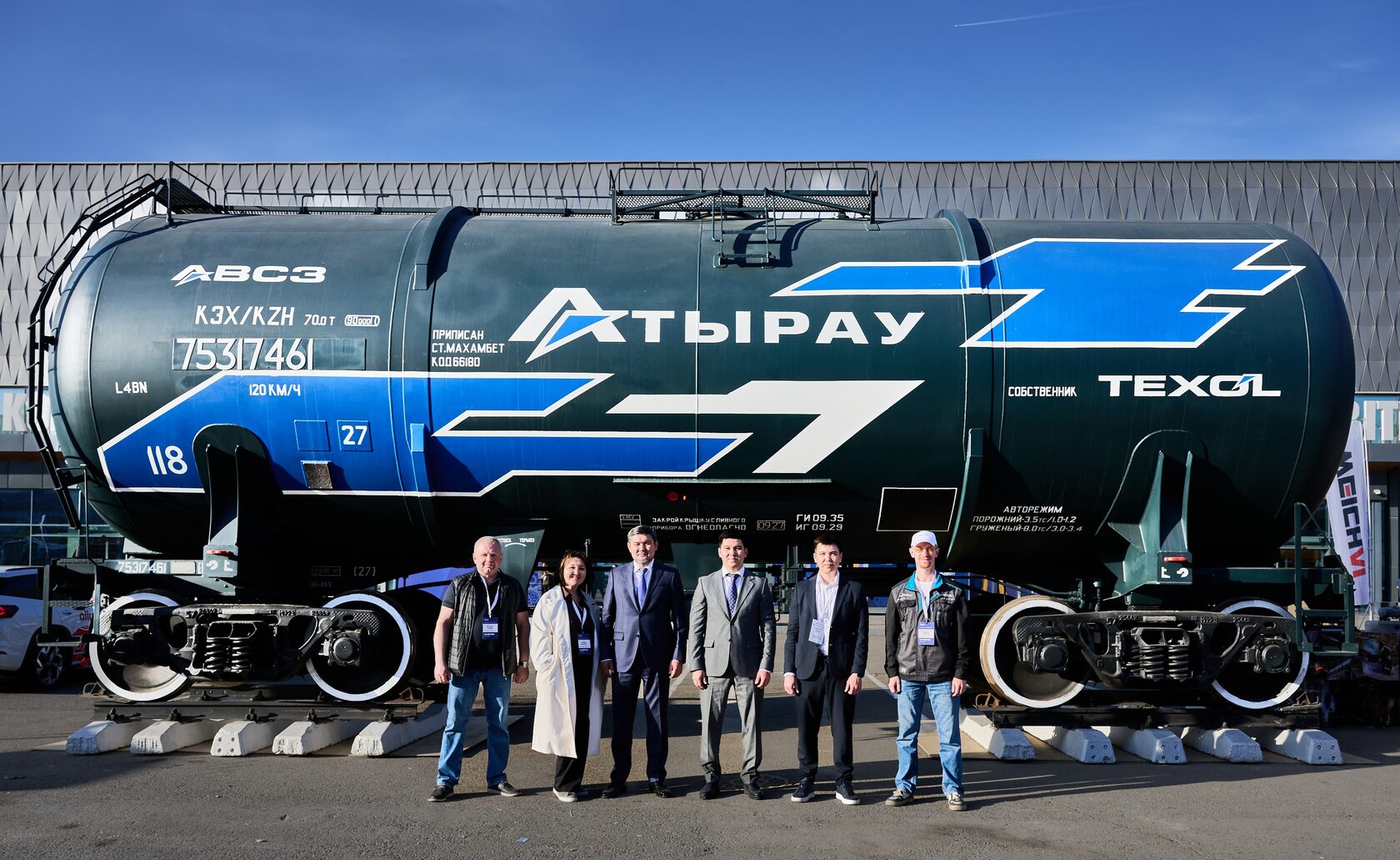 В ходе посещения выставки Премьер-министр Республики Казахстан Олжас Бектенов ознакомился с экспозицией Атырауского вагоностроительного завода (АВСЗ), входящего в группу компаний TEXOL. В рамках экспозиции была представлена цистерна для перевозки нефтепродуктов модели 15-3237 с улучшенными характеристиками.